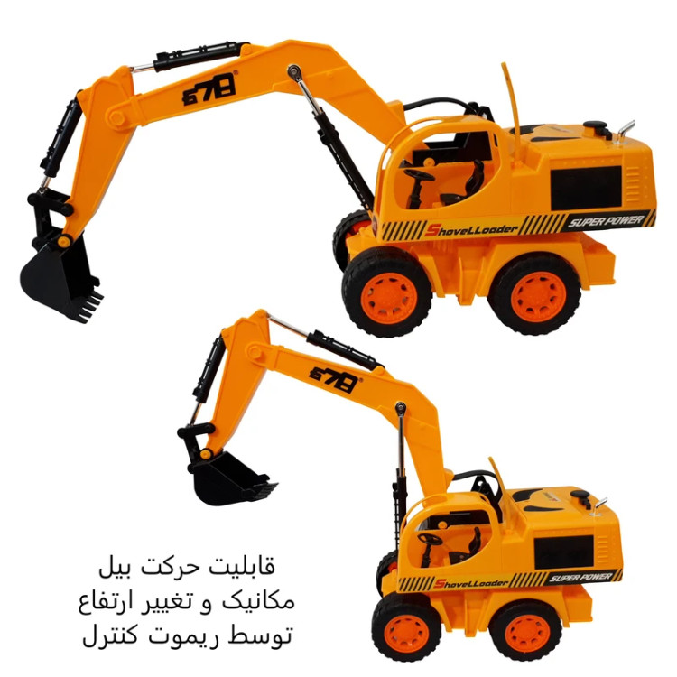 قابلیت حرکت به تمام جهت ها ( جلو ، عقب ، راست و چپ ) دارای ال ای دی رنگی در صندلی راننده ساخته شده از پلاستیک با کیفیت دارای شارژر دارای 2 بازو متحرک برای حرکت بیل بیل را هرگز به صورت دستی حرکت ندهید ( صرفا توسط ریموت کنترل انجام شود ) مناسب 3 سال به بالا