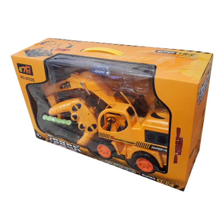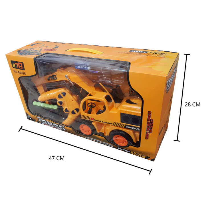 دارای ریموت کنترل 5 کانال دارای دکمه حرکت به سمت جلو ، عقب ، چپ و راست دارای دکمه هدایت بیل نیازه به 2 عدد باتری قلمی ( موجود در بسته بندی )
