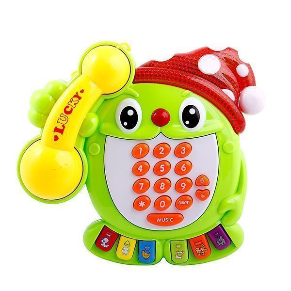 تلفن های رنگارنگ و موزیکال از اسباب بازی های مورد علاقه کودکان خردسال به حساب می آیند.تلفن موزیکال از آن دسته اسباب بازی های موزیکال است که با ظاهر زیبا و ترکیب رنگ چشم گیری که دارد هیچ کودکی نمی تواند به سادگی از آن بگذرد.این تلفن جذاب که دارای صفحه شماره گیر و کلید هایی با قابلیت پخش صدای حیوانات است به کمک شما می آید تا علاوه بر تقویت کودکتان از لحاظ ذهنی و جسمی،بتوانید او را با اعداد و صدای حیوانات مختلف نیز آشنا کنید.کودک شما با فشردن هر یک از دکمه های این اسباب بازی کودکانه می تواند یک صدای خاص را پخش کند و به همراه افکت های نوری این محصول بتواند ساعت ها مشغول به بازی شود.لازم به ذکر است که جنس این اسباب بازی از پلاستیک ABS فاقد مواد مضر است و هیچگونه حساسیت یا … را برای فرزند شما به همراه نخواهد داشت.همچنین لبه های آن ایمن و بدون تیزی می باشد.