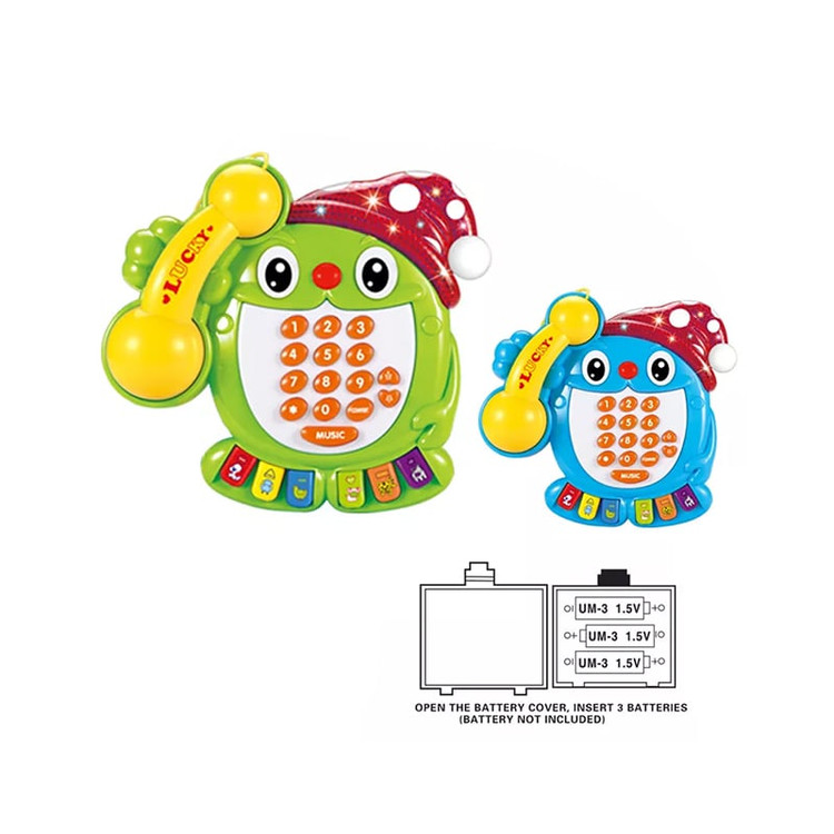 تلفن های رنگارنگ و موزیکال از اسباب بازی های مورد علاقه کودکان خردسال به حساب می آیند.تلفن موزیکال از آن دسته اسباب بازی های موزیکال است که با ظاهر زیبا و ترکیب رنگ چشم گیری که دارد هیچ کودکی نمی تواند به سادگی از آن بگذرد.این تلفن جذاب که دارای صفحه شماره گیر و کلید هایی با قابلیت پخش صدای حیوانات است به کمک شما می آید تا علاوه بر تقویت کودکتان از لحاظ ذهنی و جسمی،بتوانید او را با اعداد و صدای حیوانات مختلف نیز آشنا کنید.کودک شما با فشردن هر یک از دکمه های این اسباب بازی کودکانه می تواند یک صدای خاص را پخش کند و به همراه افکت های نوری این محصول بتواند ساعت ها مشغول به بازی شود.لازم به ذکر است که جنس این اسباب بازی از پلاستیک ABS فاقد مواد مضر است و هیچگونه حساسیت یا … را برای فرزند شما به همراه نخواهد داشت.همچنین لبه های آن ایمن و بدون تیزی می باشد.